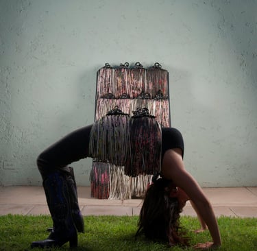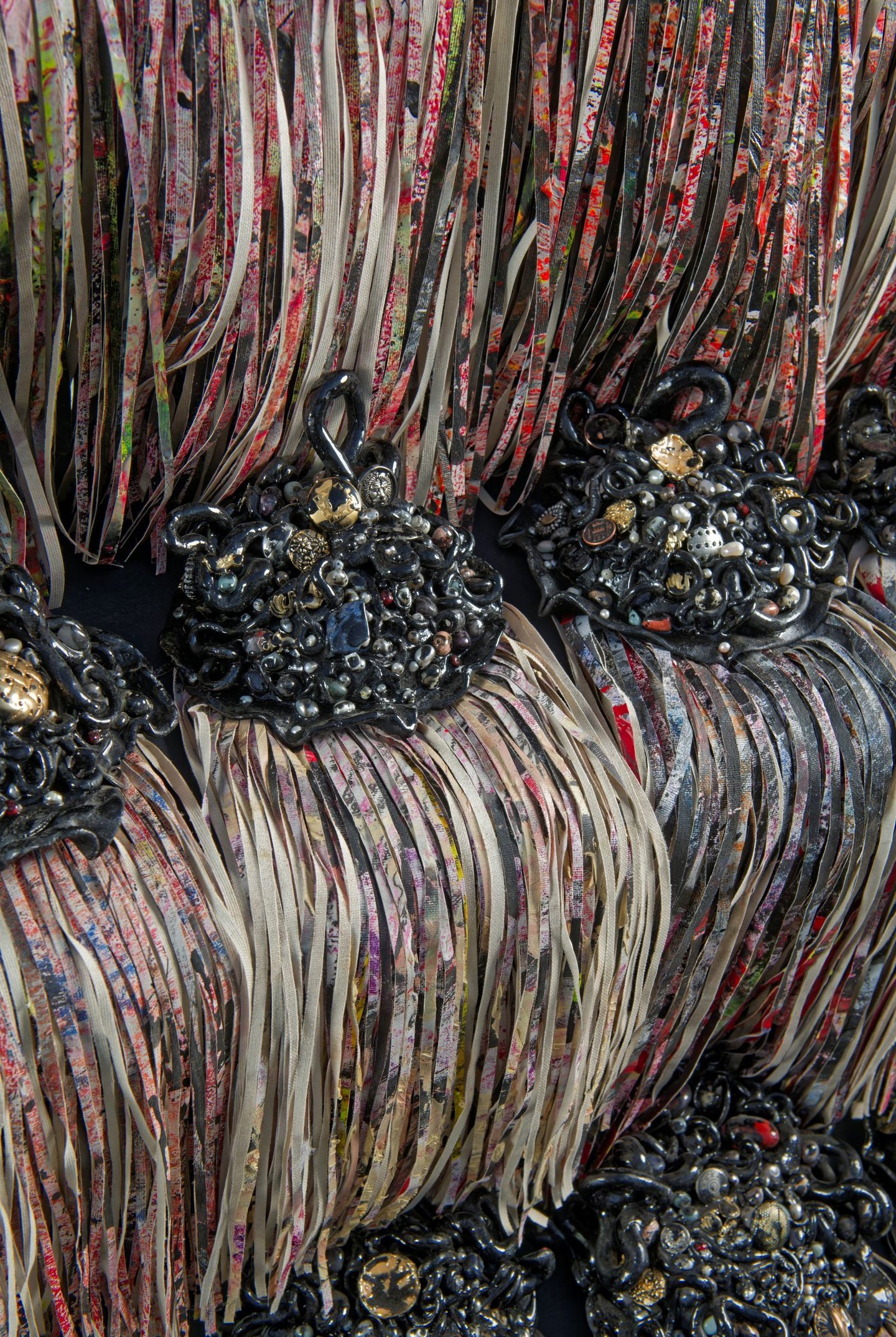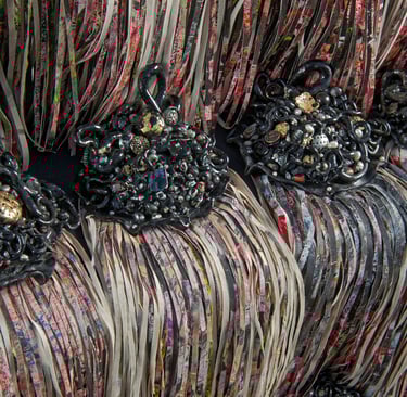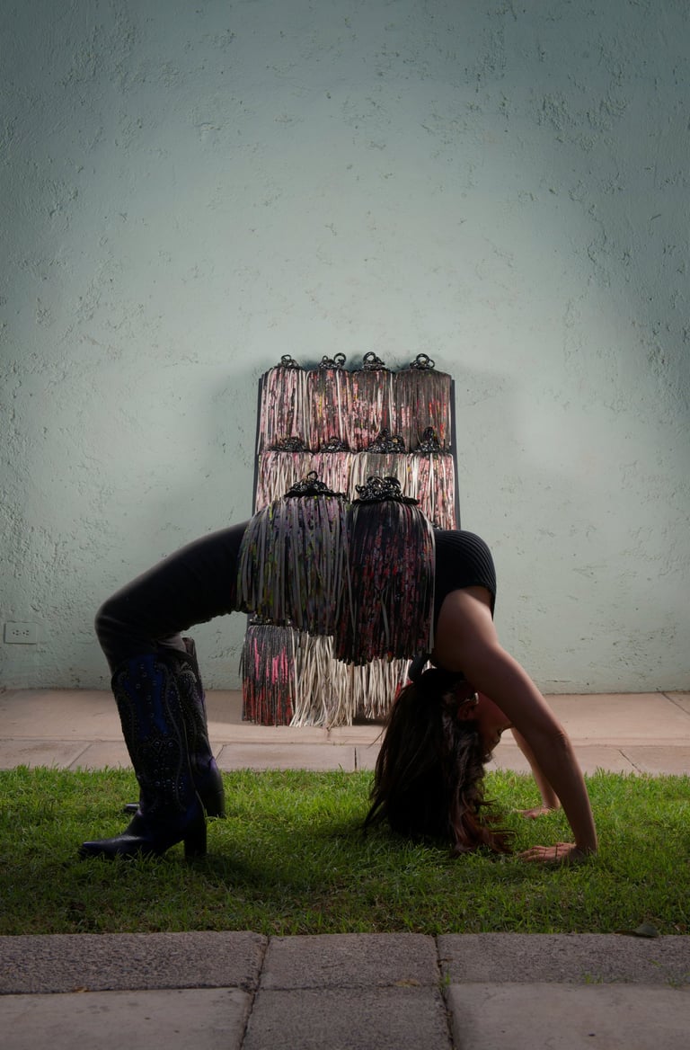 Finalmente, como parte de un proceso tanto artístico como terapéutico, la autora corta sus pinturas, destruyéndolas y transformándolas en esculturas que integran objetos personales y autobiográficos. Estas piezas condensan la propuesta del proyecto, haciendo alusión a la infinidad de conexiones neuronales y materializando la idea de transformación (del arte, de la mente y de la vida).